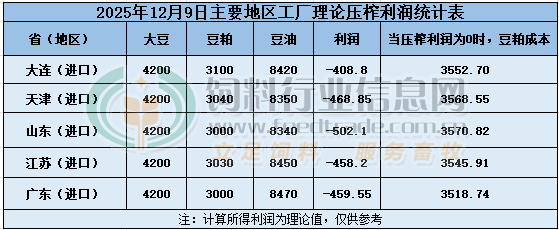 2025年12月9日大豆压榨利润日报