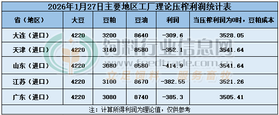 2026年1月27日大豆压榨利润日报