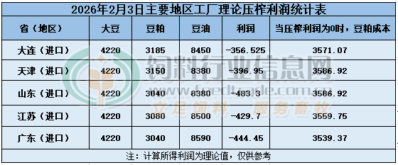 2026年2月3日大豆压榨利润日报
