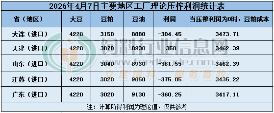 2026年4月7日大豆压榨利润日报