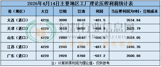 2026年4月14日大豆压榨利润日报