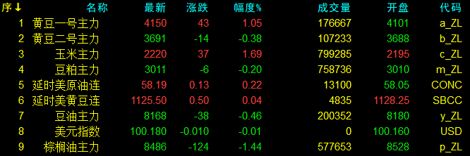 11月25日大连盘开盘动态及美盘动态