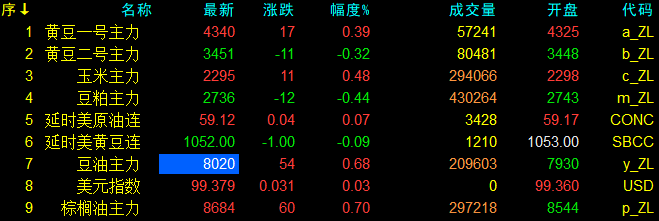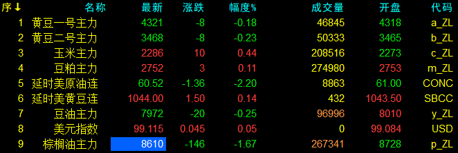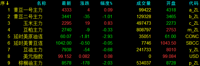 1月16日大连盘开盘动态及美盘动态