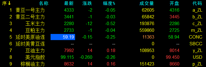 1月19日大连盘开盘动态及美盘动态