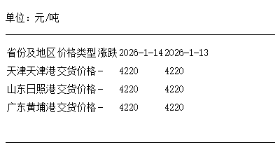 1月14日进口大豆港口分销价持平