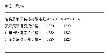 1月15日进口大豆港口分销价持平