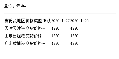 1月27日进口大豆港口分销价持平