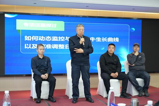 企业技术代表们踊跃发言,分享各自在应对原料波动、控制成本、提升效率等方面的实战经验与创新思路。在“如何动态监控与绘制肉牛生长曲线以及精准调整饲料配方”专项对话中,孟庆翔教授、周振明教授与福牛牧业技术总监韩胜斌、上海健荷牧业技术总监边四辈等专家同台交流,将前沿研究成果与一线生产管理中的痛点、难点直接对接,碰撞出诸多可操作的解决方案火花。