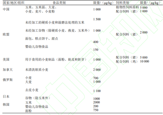 表1 部分国家、地区、组织对DON的限量标准