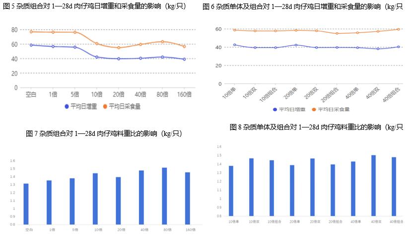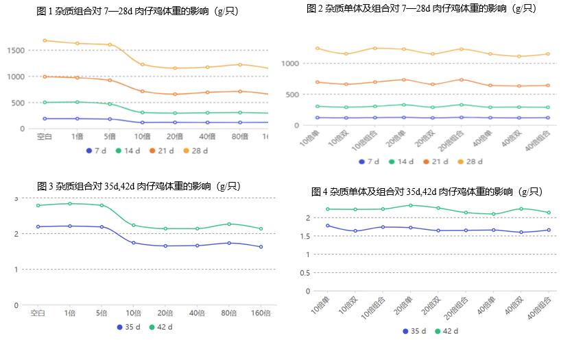 3.1 不同杂质组合对不同生长阶段肉仔鸡生产性能的影响