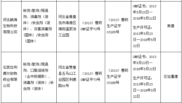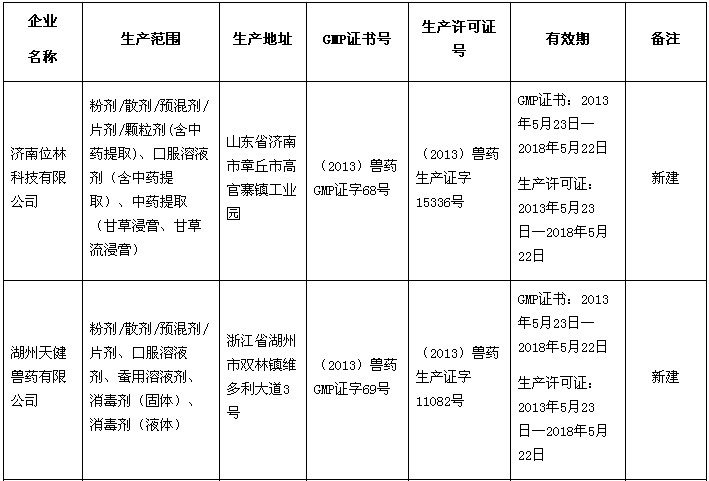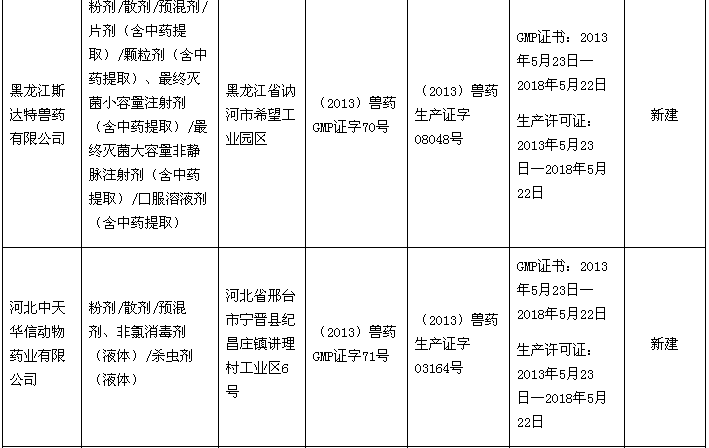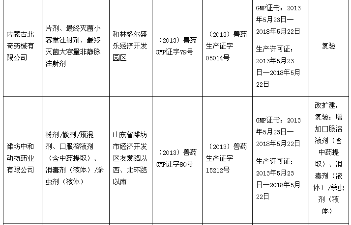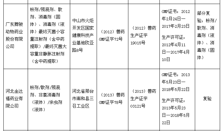 农业部第1947号公告:兽药GMP及生产许可证目录