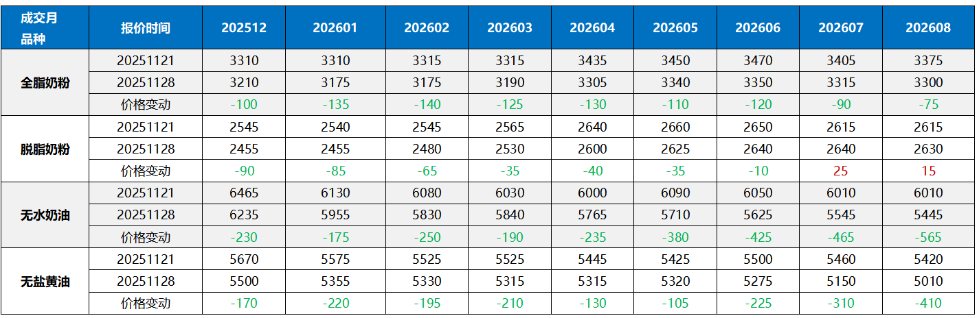 欧洲大宗乳品全线再跌,乳脂价格已经跌破2023年低点。
