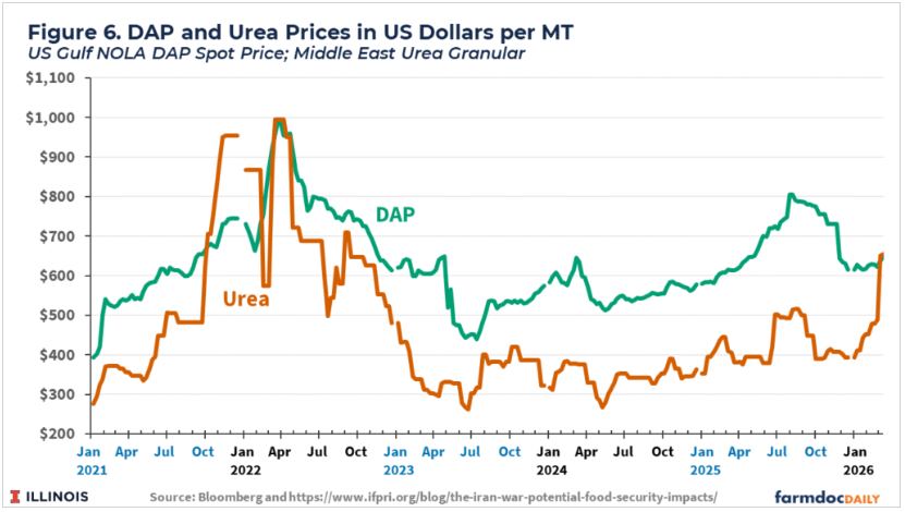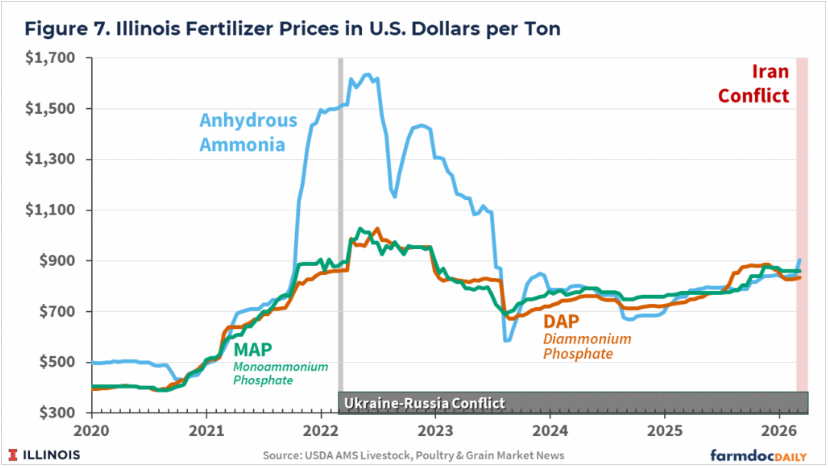 请注意,2026 年美国播种季即将到来,大多数农民已经做出了大部分生产决策。由于大部分投入品的价格和订单已经确定,因此种植面积不太可能出现大幅变化。许多农场春季作业所需的燃料已经到位。大部分磷肥和钾肥已经施用。春季和播后氮肥仍需施用,但在大多数情况下,这些投入品的价格可能已经确定。许多农场的种子、肥料和农药成本已基本确定。尽管如此,一些农民仍然需要购买投入品。此外,夏季和秋季所需的燃料和其他投入品也大多需要购买。