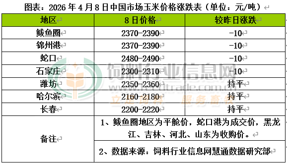 国内主产区基层售粮积极性增强,阶段性出货压力上升,小麦饲用替代效应逐步显现,用粮企业库存回升,补库需求减弱,价格上涨动能减弱。北方港口受制于粮食经营台账政策,玉米到货量仍处于偏低水平,南北港发运依然倒挂,下游采购谨慎,作业船只4艘。未来一周北港粮食装船货量约97万吨。南方港口上周谷物周度到货63.4万,周度走货47.4万吨。内外贸到货船期量增加,养殖需求低迷,饲料企业采购仍以观望为主,贸易商加快出货节奏,价格稳中小跌。国内玉米现货价格基本稳定,局部小幅下跌。东北产区近期气温回升较快,种植户售粮积极性回升,基层余粮已相对有限,粮权主要集中在贸易商手中,贸易商售粮心态有所分化,部分囤粮成本高的贸易商惜售情绪存在,低价建库的贸易商逢高出货,深加工企业厂门日常挂牌收购,也在陆续签订远期合同,市场购销活跃度相对一般,收购价格主流稳定,个别有所波动。华北黄淮产区春耕临近,基层种植户售粮变现转强,贸易商出货节奏也有所加快,深加工企业到货量明显增多,企业库存水平得到补充后,维持按需采购策略,收购价格小幅下调。养殖利润承压,饲料企业对于高价粮源承接力度有所减弱,以维持安全库存为主,而小麦饲用优势逐步显现,挤占玉米饲用消费量。