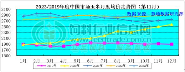 图表:2023年11月中国玉米月度价格走势图(单位:元/吨)