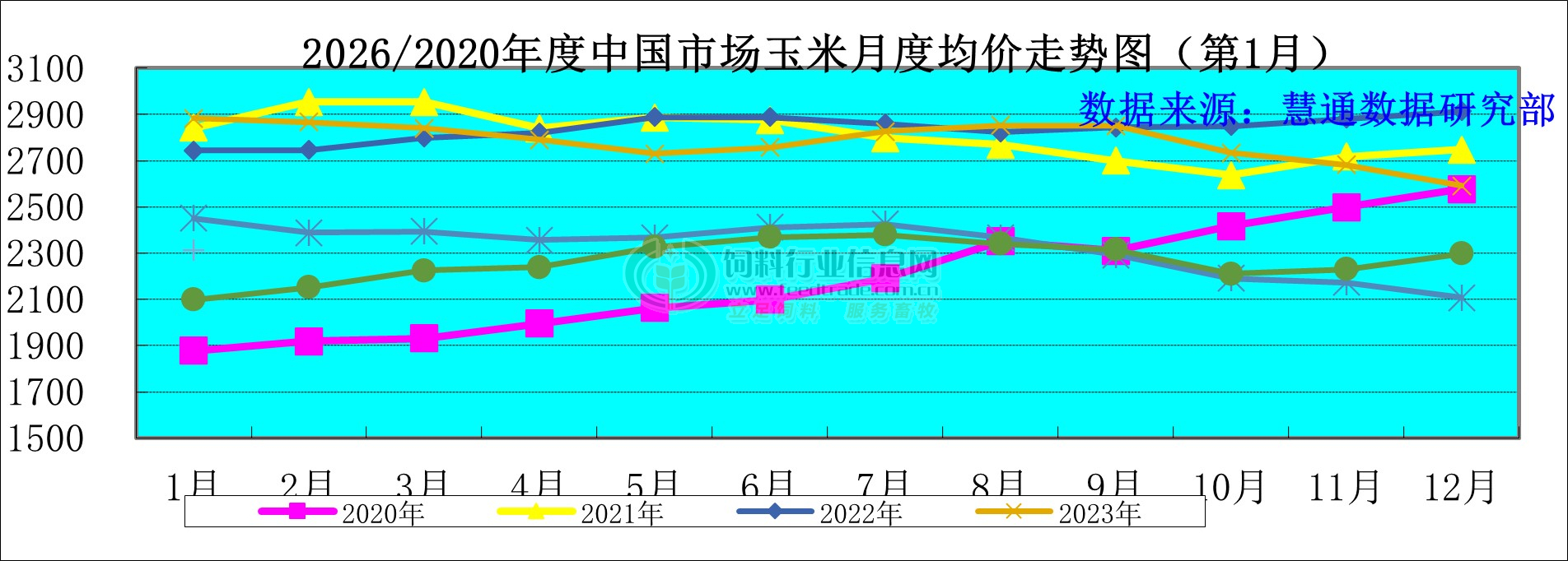 图表:2026年1月中国玉米月度价格走势图(单位:元/吨)