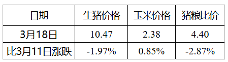 国家发改委:3月18日全国生猪出场价格10.47元/公斤