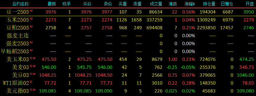 2025年1月15日大连交易所玉米开盘及美盘动态