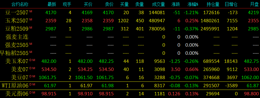2025年4月29日大连交易所玉米开盘及美盘动态