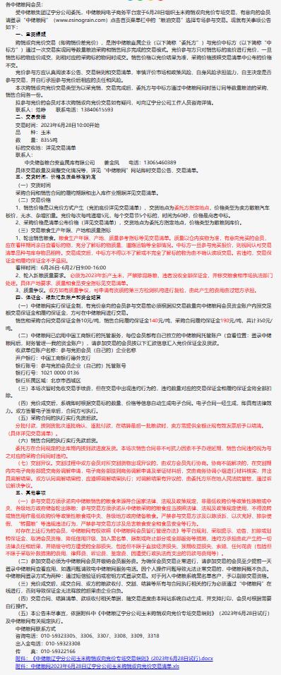 6月28日中储粮辽宁分公司玉米购销双向竞价交易专场公告