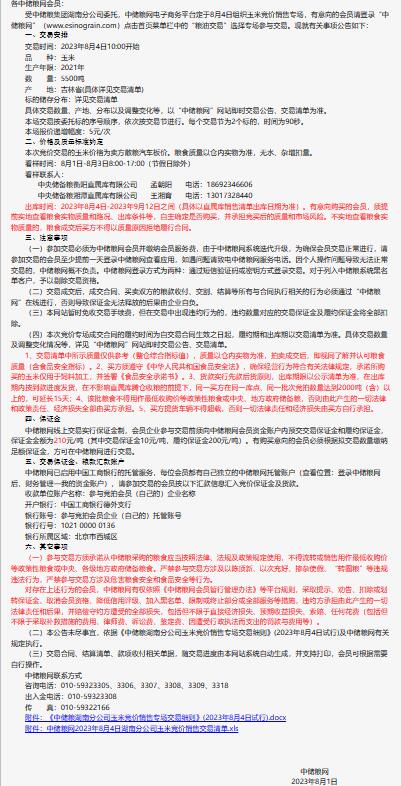 8月4日中储粮湖南分公司玉米竞价销售专场公告
