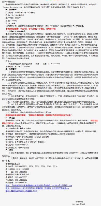 9月5日中储粮进口玉米及整理物(转基因)竞价销售专场公告
