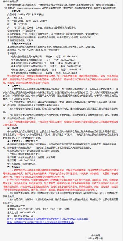 9月22日中储粮北京公司玉米竞价销售专场公告