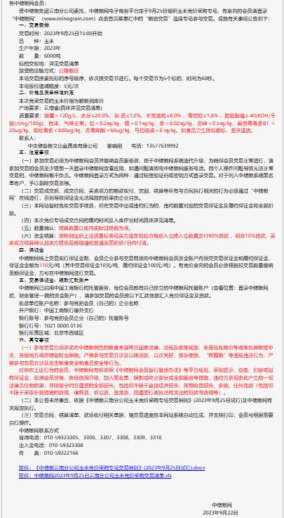 9月25日中储粮云南分公司玉米竞价采购专场公告