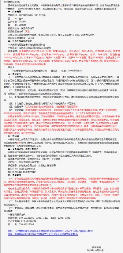 10月27日中储粮内蒙古分公司玉米竞价采购专场公告