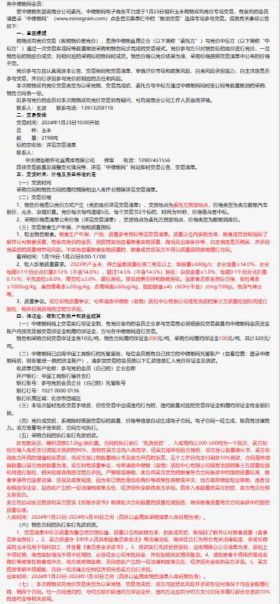 2024年1月23日中储粮湖南分公司玉米购销双向竞价交易专场公告