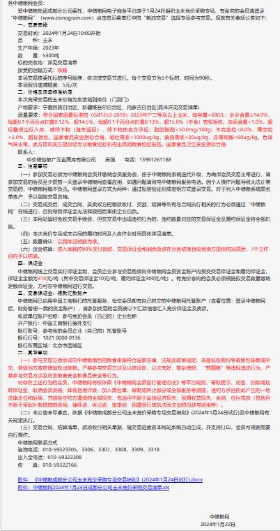2024年1月24日中储粮成都分公司玉米竞价采购专场公告