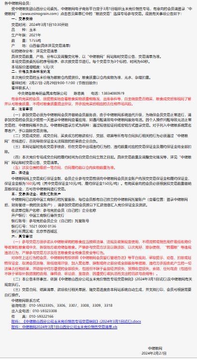 2024年3月1日中储粮北京分公司玉米竞价销售专场公告