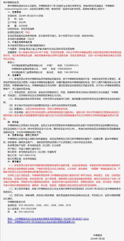 2024年7月5日中储粮湖北分公司玉米竞价采购专场公告
