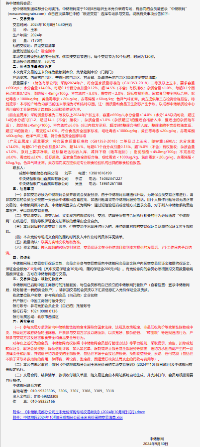 2024年10月8日中储粮成都分公司玉米竞价采购专场公告