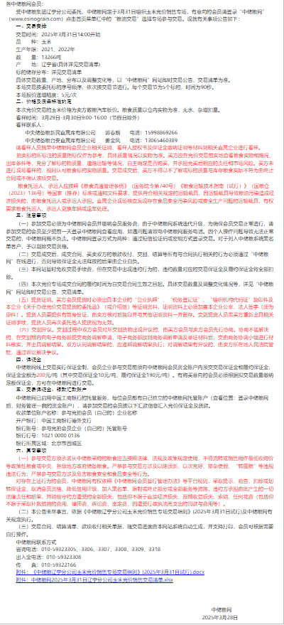 2025年3月31日中储粮辽宁分公司玉米竞价销售专场公告