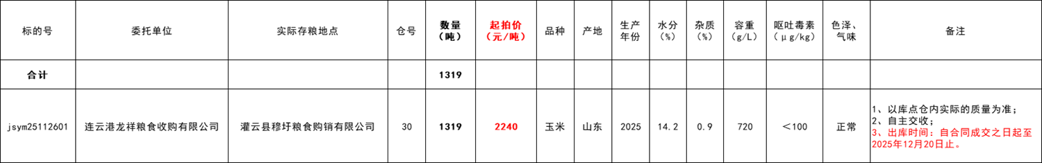 受连云港龙祥粮食收购有限公司委托,江苏粮油商品交易市场举办本次(商品粮)玉米竞价销售交易活动。具体事宜公告如下: