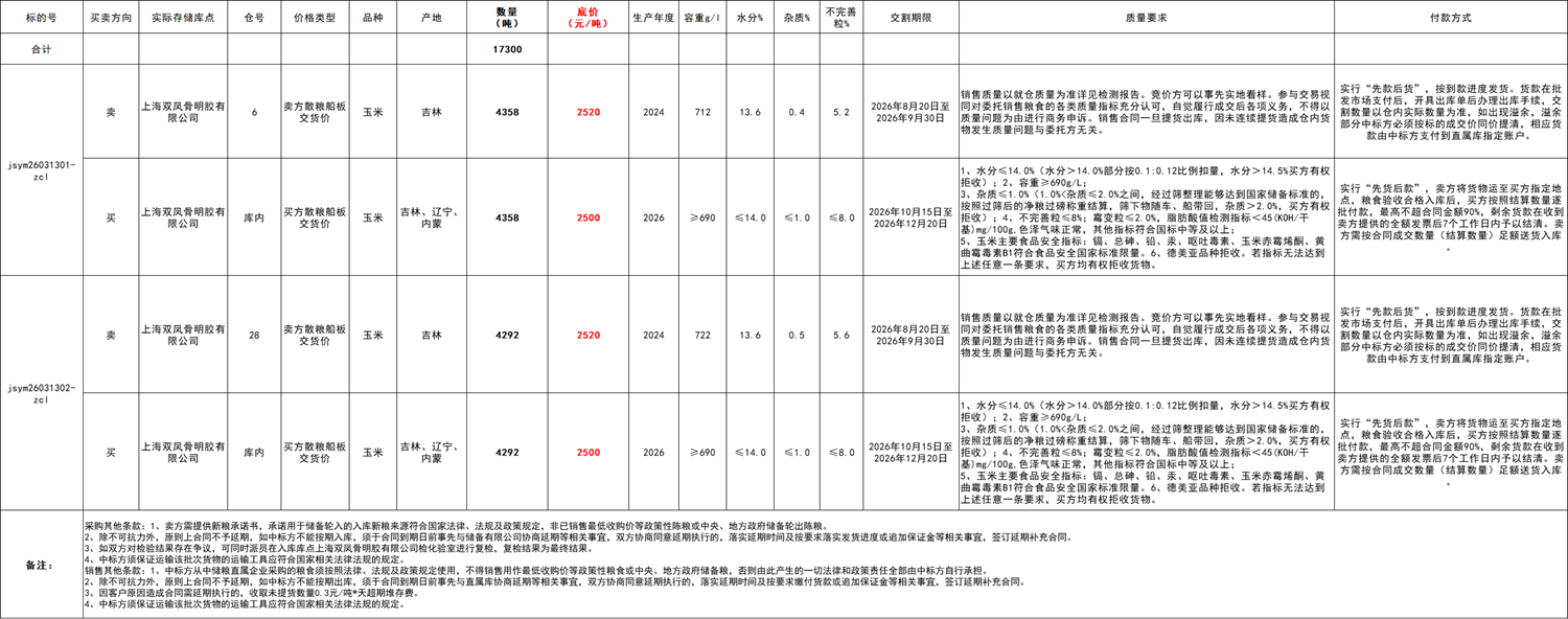 1.6交收地点:交收地点和具体仓房以交易清单为准。