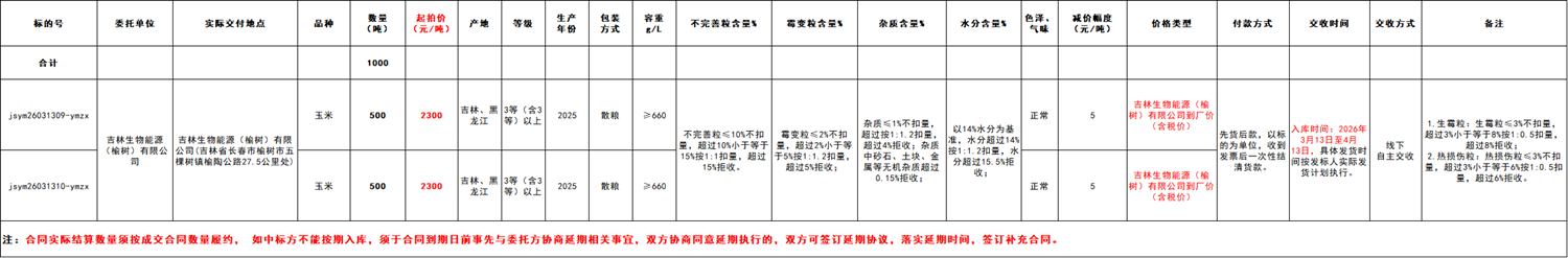 受吉林生物能源(榆树)有限公司委托,江苏粮油商品交易市场暨玉米分中心定于2026年3月13日 13:50 在“玉米分中心竞价采购交易专场”举办本次商品玉米竞价采购交易活动。具体事宜公告如下: