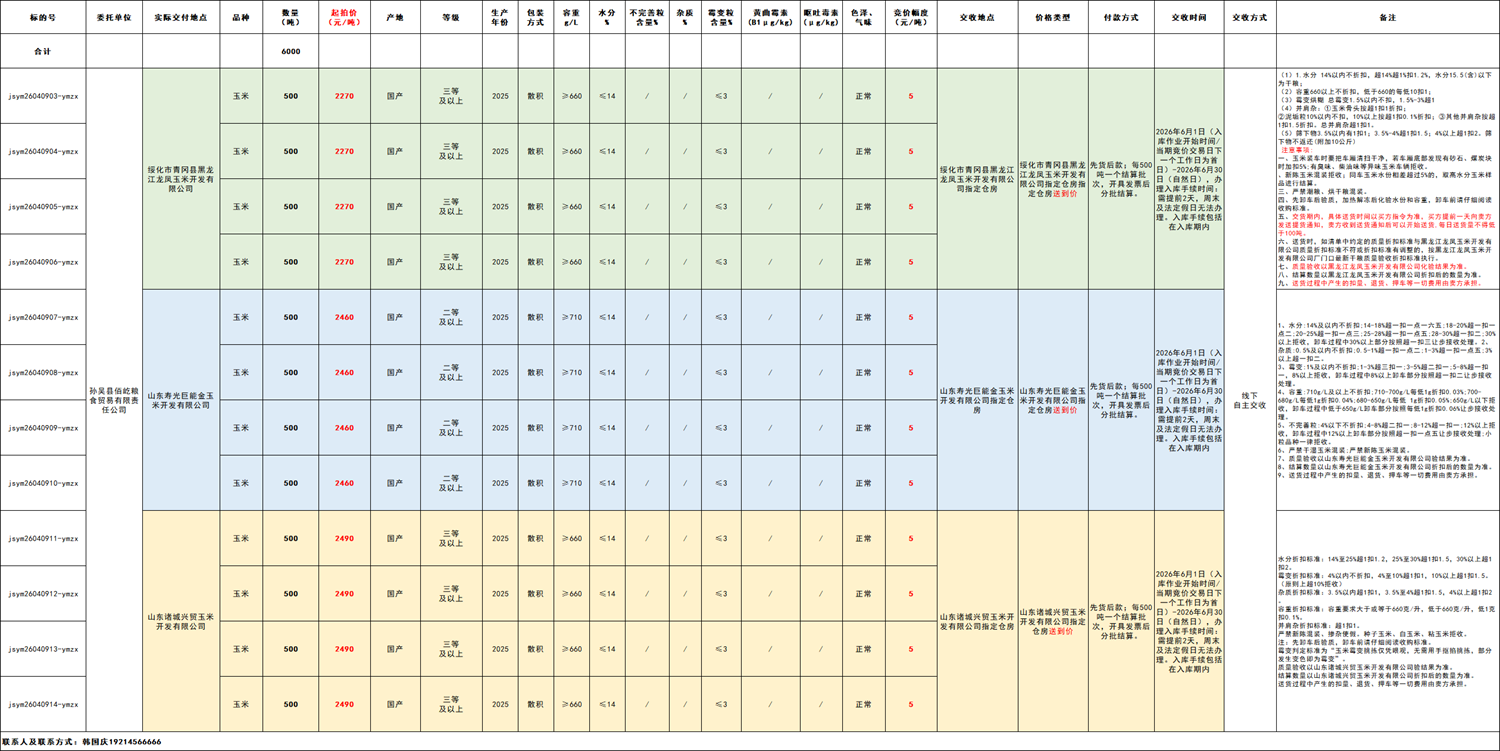 2.交收方式:买卖双方自主完成交割(双方自行承担资金安全责任,自行采取有效措施防范交割风险),供货方凭盖章合同和身份证明提前联系委托方到库点交货(详见交易清单)。