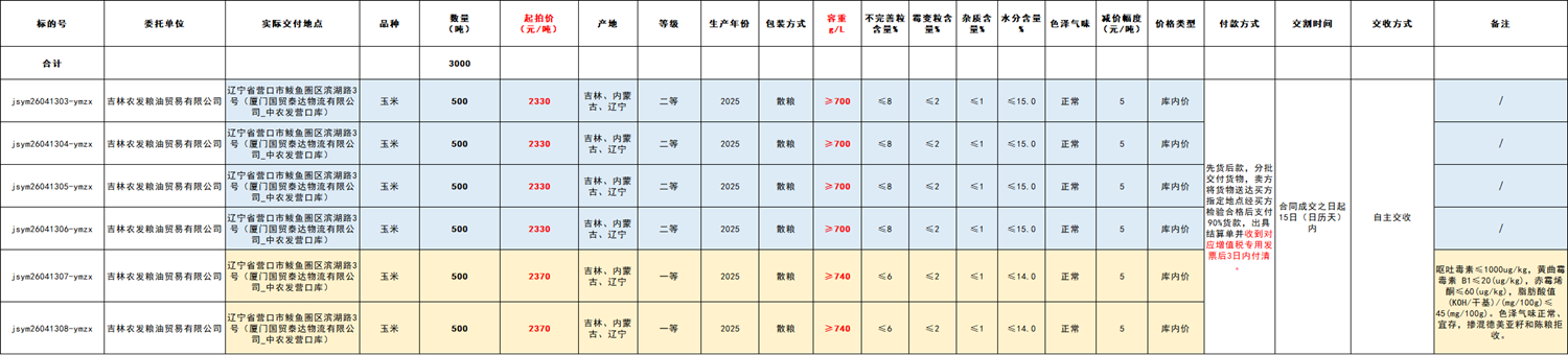 采购品种:2025年吉林、内蒙古、辽宁产玉米