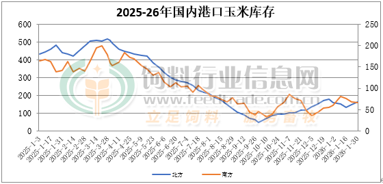 截至1月30日北方港口四港玉米库存共计约163万吨。北方港口到货情况较好,晨间集港超过3万吨。截止周五广东港口玉米库存66万吨,内贸玉米日均出货在4.3万吨。饲料企业备货需求减弱,执行合同为主。